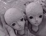 1月12日 世界の果てにアトリエを開設して早2週間。ようやく人形の制作開始である。 去年の暮れにとりあえず目玉だけはめ込んだ頭がふたつ。 まずはこの35センチ人形を、3月の人形展にだすために完成させる予定。 | ![]() |