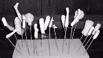 1月13日 顔を作っている間に、胴体、手足のベースを作る。 この35センチ人形は、一度シリコン+石膏の型を作ったのだが、桐粉で抜いても収縮がひどくて修正に手間がかかり、結局また原始的にひとつひとつ作るようになってしまった。 | ![]() |