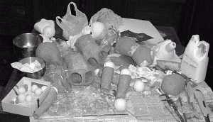 2月14日 写真は、もはや収拾のつかなくなった作業机。現在4体同時進行中。 よく、「一体作るのにどれくらい時間がかかるのか」と聞かれるのだが、大抵この調子なので本人もよくわからない。 一年間に作った個数で割れば平均がでるかもしれないが、中には2年越し4年越しとかもあるので答えはやはり「?」である。 | ![]() |