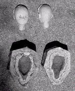 3月22日 気温差2倍の世界の果てに帰り着くと、いよいよ夏真っ盛り。 さすがにばてて何も数日間何もする気にならないが、とりあえず30センチ人形の頭を数個抜く。 前にも書いたが、型といってもほんとに役たたず。 シリコンもぼろぼろになってきたし、そろそろまともなのを新しく作らないと。 | ![]() |